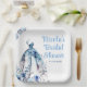 Hermoso plato para fiesta de compromiso con vestido de novia floral azul con flores. Perfecto para una despedida de soltera. Las palabras se pueden cambiar para adaptarse a tus propios detalles o requisitos