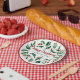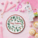 Hermosas hojas color agua verde con bayas rojas y azulejos adornan estas lindas placas familiares de papel de fiesta navideño para tu fiesta navideño. Personaliza el guión de festividad roja con tu apellido en el centro de este magnífico patrón botánico.