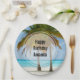 Plato De Papel Hermosos palmeros en una playa tropical Cumpleaños