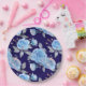 Plato De Papel Hermosos rosas azules, fondo azul marino,