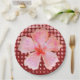 Plato De Papel Hibiscus rosado sobre fondo rojo punteado