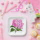 Un ilustracion antiguo de una flor de bonito de hidrangea rosa ocupa el centro del escenario en esta placa de fiesta de papel y se coordina perfectamente con varios eventos, desde duchas de novias hasta duchas de bebés y todo lo demás.