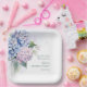 Plato De Papel Hidrángulos Azules Rosa 65 cumpleaños
