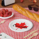 ¡Grande para el día de Canadá, cualquier acontecimiento canadiense o multicultural de las ocasiones, de las celebraciones, de las barbacoas, de la familia, privado o corporativo, funciones políticas, recepción va de fiesta para los nuevos residentes, una conferencia, un fiesta de casa, fiestas en la oficina, ocasiones patrióticas o asambleas, con un instinto distintamente canadiense! Ésta es la hoja de arce roja clásica con el fondo blanco y las fronteras rojas, los colores alegres de la bandera canadiense.
