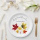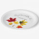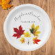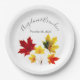 Añada un toque de encanto vintage a su boda con estos platos de papel de hoja de arce colorido y personalizable. Estos platos, con un diseño de hojas de arce vibrante sobre un fondo blanco limpio, aportan elegancia y calidez a cualquier celebración. Personalice fácilmente el color de fondo y los detalles para crear una apariencia única antes de realizar el pedido.