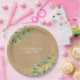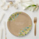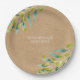 Plato de papel de hojas frescas de pradera rústica con delicados tonos de follaje verde acuarela, enmarcando su mensaje personalizado. Perfecto para bodas, fiestas de compromiso, celebraciones de aniversario, baby showers y reuniones de cumpleaños. Diseñado por Thisisnotme©