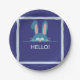 Plato De Papel Hola conejo azul de Pascua