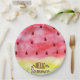 Hola Summer Watermelon Paper Plate un espectacular fiesta con placas de papel de personalizable completo para coincidir con tu tema! Cada pack de 8 platos de papel se imprime en cartón resistente decorado con los diseños y fotos que más te gusten. Son perfectos para servir pasteles, aperitivos o ensaladas. Solicite estas toallas con nuestras servilletas de papel para un conjunto completo de vajilla de fiesta que sus invitados amarán.
