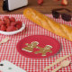 Plato De Papel Hombre y mujer con pan de jengibre en rojo