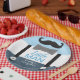 Coincide con la invitación y decoración de tu pequeño hombre con estos adorables platos de papel en azul marino y azul marino con bigote, corbata de arco y tirantes. ¡Invitación coincidente y otra decoración fiesta en la tienda!