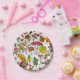 Plato De Papel Hongos, hojas, nueces y bayas otoñales en blanco