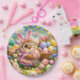 Who the owl set on a Easter looking backdrop really cute looking birthday plate