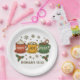 Great party idea for the Christmas season get-togethers. Fun holiday plates to use at Christmas parties, work or church! Cute design with colorful mugs of Hope Joy and Peace filled with cocoa and topped with whipped cream, marshmallows and a candy cane. Surrounded by golden brown snowflakes and scriptural message romans 15:13 "Now may the God of hope fill you with all joy and peace in believing...".
