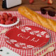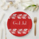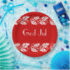 Placa de papel con algunas estacas festivas en rojo y blanco. Viene con el texto " Dios Jul" - significa Feliz Navidad en sueco y en otros idiomas escandinavos también. Puedes personalizar ahora con tu propio texto .