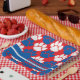 Repetida huella digital roja y azul Placas de papel de graduación personalizadas perfectas para graduaciones, eventos escolares, eventos de animales, eventos de equipo y más! La huella digital es perfecta si su mascota de clase es: Cougars, Bengals, Tigres, Leones, Panthers, Wildcats o Bulldoges!
