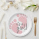 Plato De Papel Huellas rosas cortas es un Baby Shower Chica
