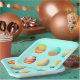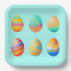 Placas de papel en 6 huevos de Pascua coloreados con estampado de torso pastel