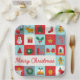 Merry Christmas Cute Retro Navidades de invierno Icons Navidades de papel Fiesta Plates presenta el texto "Feliz Navidad" en la moderna tipografía de escritura roja acentuada con íconos Navidades como reno, árbol, caldo, timbre, muñeco de nieve, regalo, corona, hueca, estrella, caña de caramelo, pan de jengibre, ángel y más. Diseñado por Evco Holidays www.zazzzle.com/store/evcoholidays