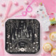 Plato De Papel Ilustracion Castillo de cuento de hadas en blanco