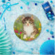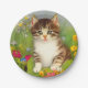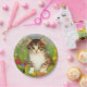 ¡Placas de papel con un gato sonriente! Este gato gracioso está jugando en un jardín de flores rosas, naranjas, rojas y azules. Un regalo extraordinario para los amantes del gato y del arte victoriano.