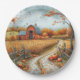 Plato De Papel Ilustracion de otoño de un granero rojo rústico