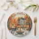 Plato De Papel Ilustracion de otoño del parque de la fuente Vinta