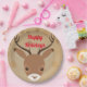 Plato De Papel ilustracion de renos sobre fondo marrón