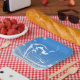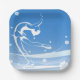 Una mujer patinando sobre un fondo azul en un ilustracion blanco de patinaje sobre hielo. Este diseño parece realmente efectivo en estas placas de papel