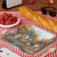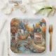 Plato De Papel Ilustracion Puente de la Aldea Otoño