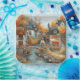 Esta imagen retrata un pueblo sereno e idílico con un suave arroyo sereno que serpentea por el centro, cruzado por un puente de piedra arcaica. Las casas son pintorescas y coloridas, con paredes azul claro, postigos rojos y florecientes macetas. El pueblo está rodeado por un follaje otoñal que pinta los árboles y el paisaje en cálidos tonos de naranja, oro y rojo. Pequeños botes flotan tranquilamente en el arroyo, mientras que las hojas se dispersan sobre la superficie del agua. El ambiente es tranquilo, evocando un encanto atemporal y la armonía con la naturaleza.