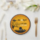 Diseño de halloween de placas de papel en acentos naranjas en blanco y negro. Truco o tréguese y coma algo y asuste es texto de personalizable. Árbol de Halloween con búho y ilustracion de cráneo negro.