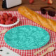 Placa de papel de impresión turquesa y damasco negro. Este elemento forma parte de una colección que es personalizable.
