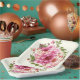 Este plato de papel se muestra en un color marfil claro con una bonita impresión floral. Personalizar este artículo o compra tal cual. Imprimir material freepik.com