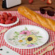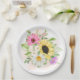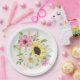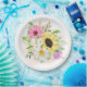 Este plato de papel se muestra en color blanco con una encantadora impresión floral.