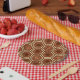 Plato De Papel Impresión de Kimono Hexagonal, Marrón y Beige