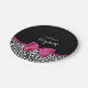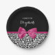 Platos de papel de papel de leopardo blanco y negro con un lazo rosa oscuro vivaz atado en una bonita proa giratoria. Personalice esta moda y diseño elegante de patrones animales añadiendo el nombre de su chica adolescente fiesta. Imagen impresa plana, NO cinta real.
