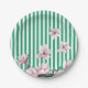 Plato De Papel Impresión de magnolia de franja verde de verano, p
