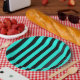 Placa de papel de impresión de rayas turquesas y negras. Este elemento forma parte de una colección que es personalizable.