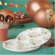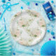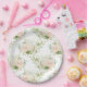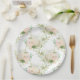 Este plato de papel se muestra en una bonita impresión de rosas blancas y lirios. Personalizar este artículo o compra tal cual. Imprimir material freepik.com