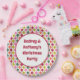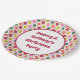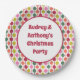 Añade tu propio mensaje personalizado a estas placas de papel, que son perfectas para todas tus celebraciones navideñas. Presentan un patrón geométrico de estilo retro en los años 70 Navidades de colores rojo, verde oscuro, verde limón, rosa y naranja. Tu texto está en negrita con letras rojas en el centro.