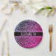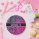 Diseño de impresión de piel de leopardo. Con un banner oscuro que está listo para ser personalizado y añadir cualquier nombre a esta letra de gato salvaje. Rosa brillante caliente y morado.