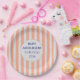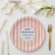 Plato De Papel In Bloom Coral Stripe Baby Shower Personalized