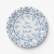 Una placa de papel de bonito a personalizar, con un delicado patrón floral azul índigo en un fondo blanco que puede cambiar si lo desea. Este diseño, que forma parte de la colección "Índigo" de Posh y Painterly, se puede ajustar a cualquier placa de papel.