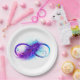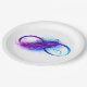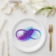 Símbolo infinito con una hermosa pluma pintada de color violeta y azul brillante sobre fondo blanco.