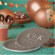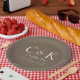 Este plato casero personalizado presenta un diseño sencillo y moderno. En el centro se colocan las iniciales del monograma de ejemplo, seguidas de una fecha y una ubicación del boda. El fondo está decorado con un color marrón shitake que inspiró la tierra en el otoño.