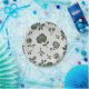 Round plate with intricate dark floral patterns on a light background. The design has roses and leaves with a subtle honeycomb texture, viewed from top and angled sides.