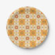 Plato De Papel Intricate orange and brown geometric pattern
