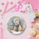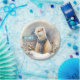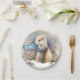 Cuto plato de papel fiesta de cumpleaños con un ermio celebrando el invierno. Para los niños nacidos en invierno. Personalizar este producto agregando la información de su fiesta.