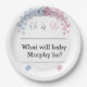 ¿Qué será el bebé? Pulverización floral azul y rosa en la parte superior con botellas coincidentes en la parte inferior. Todo permiso personal puede ser editado. Los gráficos no se pueden cambiar. el género revela los PLATES de papel