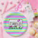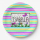 mariposas y flores de bonito púrpura y rosa con el nombre de platos de papel de la fiesta de cumpleaños Isabella.